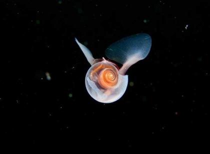 海蝶是小型的海蜗牛,会浮在海中、用他像翅膀的脚游泳。