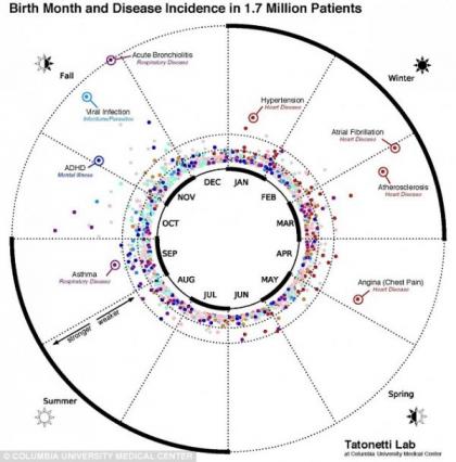 Tatonetti博士表示:“人们不应对这些结果过分紧张,相比饮食和锻炼,出生月份对发病率的影响更为次要。”