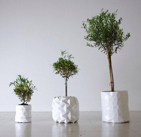 英国伦敦皇家艺术学院毕业生Begum和Bike Ayaskan设计了一款具有复杂折纸结构的花盆,能随着植物长大而展开,以提供更大空间。这套称为“Growth”的花盆由聚丙烯制成,并由计算机数控机床切割成由互相镶嵌的三角形组成的圆柱形。