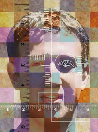 科学家找来4.4万名年龄在10到70岁之间的、智力和记忆力都很正常的志愿者,请他们参与面孔记忆测试。在第一项测试中,志愿者被要求用20秒钟的时间记住一张面孔的图像,图像包括1个成年人面孔的正面和左右两个侧面,这样先后记忆了6张图像。3天后,科学家把其他面孔图像与前面6张面孔图像混在一起,请志愿者指认他们见过的面孔。第二项测试与第一项基本相同,所不同的是,增加了认人的难度一一科学家用电脑对志愿者先前看过的6张面孔进行了模糊处理。