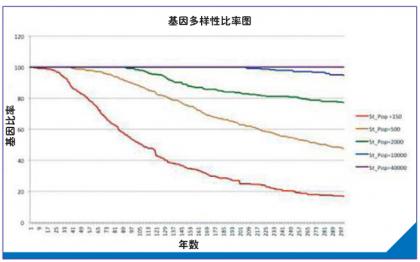 结果显示,如果按照4万人的初始人口,最后基因多样性的比率能够达到100%。不过,即使只有1万人,基因多样性的比率仍在一个可行性的范围内。而且,这两个数字在各种灾难测试中的结果都还不错,能够保证殖民人口有足够的基因多样性。但是,如果数字低于1万,那基因多样性的比率就会大大降低。