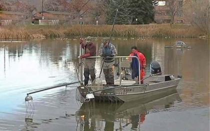 现在工作人员必须面临两难的抉择:一是放弃这12英亩的湖泊,任金鱼和其它物种自生自灭;二是以电击方式把所有鱼种电出水面,再把金鱼一只一只回收起来 (这过程中鱼群”不一定”会死)。