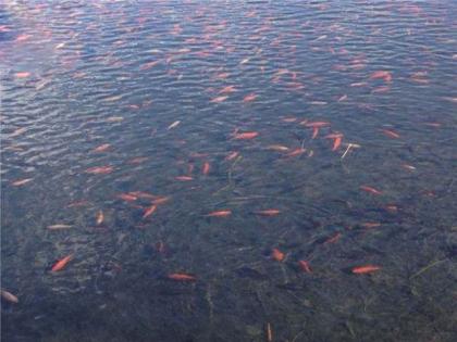 还不错吧!其实这个湖真正的名字叫作“泰勒湖” (Teller Lake),位于科罗拉多边境,原本是个生态系很完整的人工湖。可是在几年前,却有人私自把家里的几只宠物金鱼带来放生,结果一段时间过去了,这里的“鱼”口数竟然成长了千倍,现在这个泰勒湖里面金鱼的总数量已经高达3、4000只…