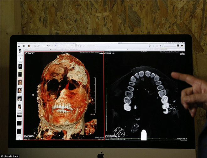 经过扫描后,专家们可以更详细地研究照片和罹难者遗骸。这名罹难者的嘴里还有牙齿,甚至连蛀牙都被拍了下来!还原度真的超高啊!