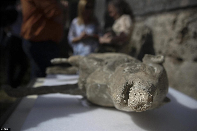 大约有100名罹难者的遗骸透过石膏保存下来,其中还有狗,被认为是当时的宠物。