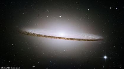 这是宇宙中最上镜头的星系——草帽星系(M104),这个星系的特点是明亮白色球状内核被包含星系螺旋结构的尘埃带包裹着,从地球角度进行观看,这个星系倾斜角度接近于侧立。