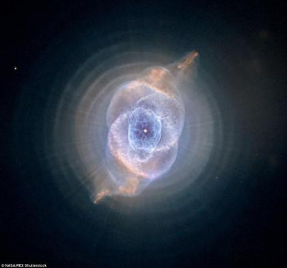 这张照片被称为“猫眼星云”,颇似科幻电影《指环王》中的索伦魔眼。据悉,猫眼星云是最早发现的行星星云之一,也是结构最复杂的星云之一。