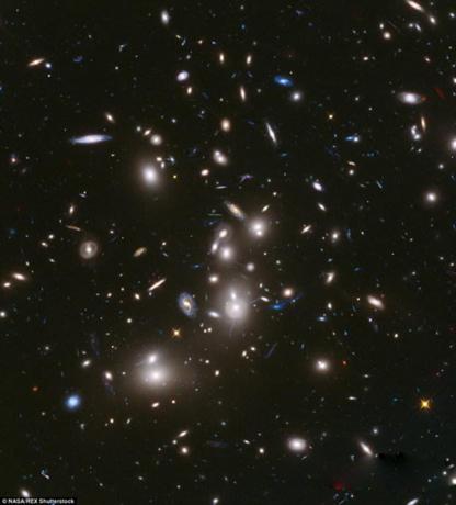 这张长时间曝光而成的图像拍摄的是超大质量星系团艾贝尔2744,它包含着数百个星系。
