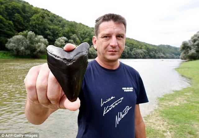 斯捷潘-苏塞西在克罗地亚一条河流中发现一块远古巨牙鲨牙齿化石,推测这条巨牙鲨体长可达到18米。