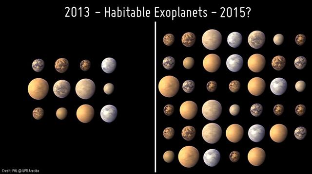 系外行星观测在最近几年取得了重要进展,截至今天(2015年7月24日),已确认的系外行星达1935颗,属于1225个行星系统,其中484颗系外行星位于多行星系统内(数据来源:http://exoplanet.eu/catalog/)。系外行星的观测方法也有新的突破,其中用凌日时间变分法发现3颗,脉冲星计时法发现18颗,直接成像法发现51颗,微引力透镜发现34颗,径向速度或天体测量法发现591颗,凌日法发现 1,179颗。开普勒望远镜自2009年发射以来在太空开展的天文观测,大大提高了系外行星搜索的效率,目前已经探测到18,000颗可能的系外行星,其中262颗与恒星的距离不远不近,位于温度适宜的宜居带。
