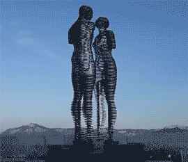 由艺术家Tamara Kvesitadze所设计的动态雕像,灵感来自于爱情小说《阿里与尼诺》(Ali and Nino)。雕像上的男女先对望着彼此,接着两人融为一体,最后穿越彼此,走向分手的命运,柠檬以前写过完整的报导唷!