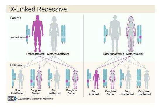 这意味着,这位母亲有小孩之时,她有50%的几率把有缺陷的X染色体遗传给下一代。