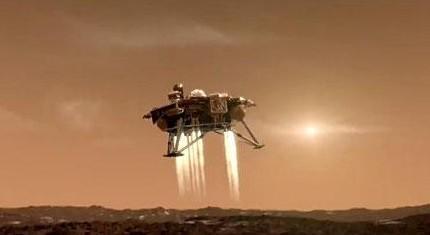 凤凰号着陆器利用反推火箭实现动力减速,这种方式适用于较重着陆器的着陆,同时可准确选择着陆点 第三种方式是空中吊车着陆。这种方式适用于大质量着陆器的登陆,2011年美国发射的好奇号火星车首次采用这种技术并获得成功。好奇号以每小时2万公里高速进入火星大气层,火星车被装载在盾形的热保护罩中,保护罩可以经受高温烧蚀和隔热防护,确保火星车穿越火星大气层时不会被烧毁。当探测器距离火星表面11千米高度时,先打开巨大的降落伞降低飞行速度,24秒之后,热保护罩脱离。当探测器下降到1.4千米高度时,背壳分离,探测器上的八台制动火箭点火,通过火箭反推将下降速度从每秒80米减速至每秒0.75米。当探测器距离火星表面20米高度时,着陆器在空中“悬停”,空中吊车释放出尼龙绳,将“好奇”号火星车从着陆器上吊运到火星表面,实现着陆。