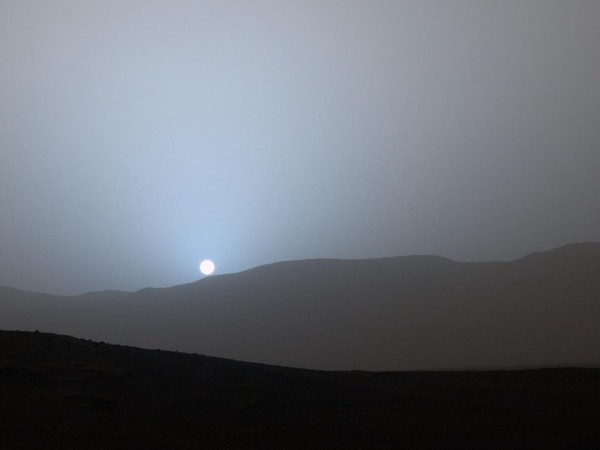 2015年好奇号探测器拍下第一张彩色火星日落照。在那里日落看起来是蓝色的,因为火星大气层的尘埃颗粒较小,造成散射蓝光的能力较强。
