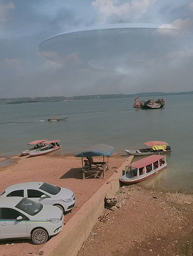 Express.co.uk在一张照片中看到同一艘母舰从云中出现,据说有人2天前在巴西拍这张照片并且上传到网络。