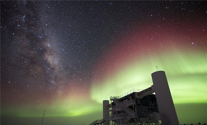 探索宇宙的IceCube:IceCube位于南极,是世界上最大的中微子探测器,它使用了5160个探测器来探测极其强烈的宇宙源发出的高能中微子,比如说黑洞、爆炸的恒星和中子星等。当中微子与冰中的水分子碰撞时,就会释放出高能亚原子粒子。这些粒子移动非常迅速,并且会发出一种名为切伦科夫辐射的短暂光,这就会被IceCube所捕获。科学家希望借助这种信息重现中微子的路线,并且识别其来源。