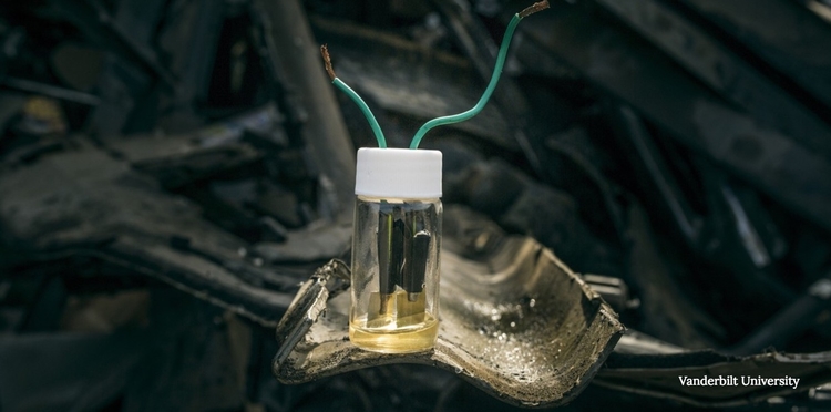 一个从垃圾场金属制造的电池原型。图片来源:范德比大学