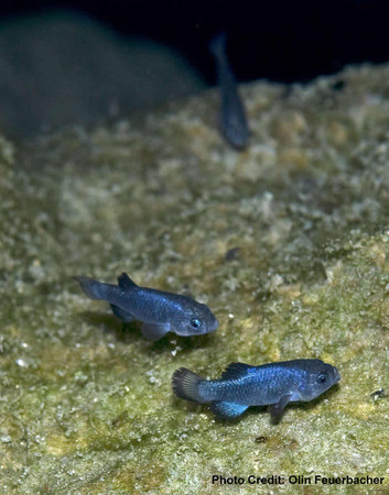 生长在沙漠中的珍贵鱼种“魔鳉”。