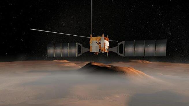 ESA火星快车轨道探测器飞越火星南极示意图。(ESA/NASA/JPL-Caltech)