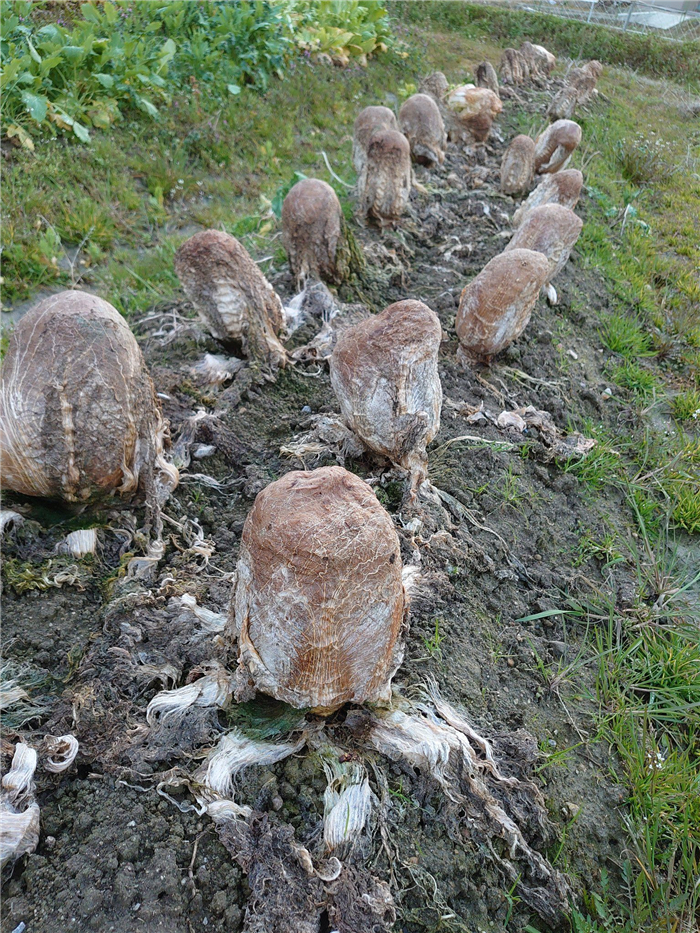 我们印象中的大白菜总是有着翠绿的外观,与照片中的外观完全不符合。看到大白菜被错认为异形蛋,内行人也忍不住跳出来解释,白菜会变成这样子是因为日本的冬天比较冷,菜叶细胞内的水分冻结,导致外侧的叶子枯萎,才会形成这灰灰土土的模样。至于为什么数量会这么多,则是因为如果遇到暖冬销量不好时,农民会将没收成、卖相又不好的白菜放在那当肥料,这个情形也是冬天到春天间才能看见特殊景象。