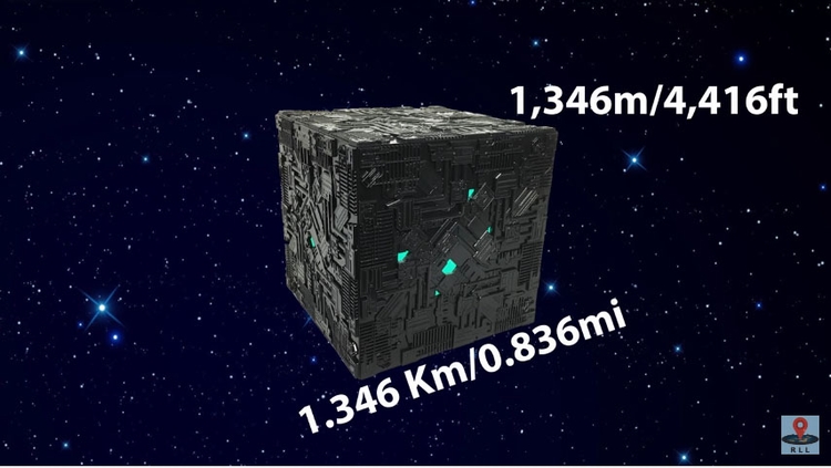 所以这个立方体的长跟宽必须是1.346公里,高必须是1346公尺。听起来很巨大,不过…