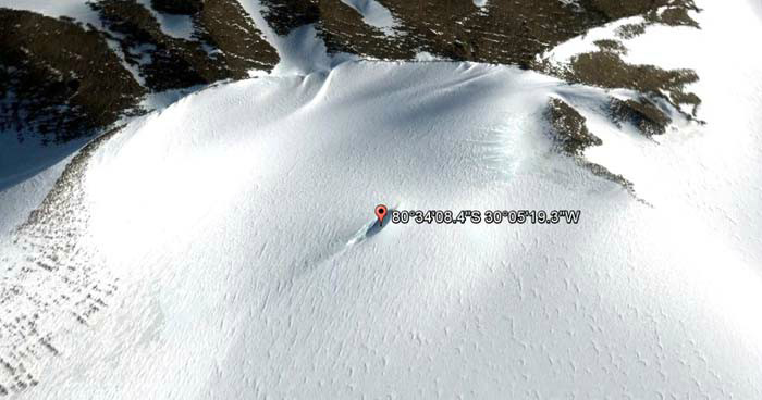 一位幽浮猎人宣称他发现坠机地点、外星太空船的残骸,他认为它们可能在南极的冰层中。