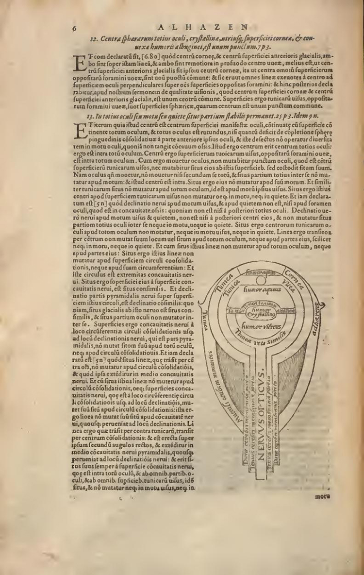 《光学》拉丁文译本(图像来源:Internet Archive)海什木亦被誉为“眼科学之父”,从这张人眼解剖图可知这个美誉其来有自(书眉的ALHAZEN为海什木的拉丁化名字)。