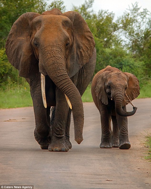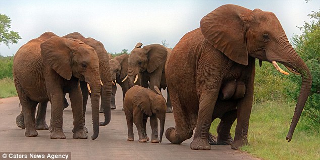 一名51岁的野生动物摄影师雷娜塔 (Renata Ewald) 在南非的克鲁格国家公园 (Kruger National Park) 拍到一系列非常珍贵的照片。她在当天早上遇到一群野生象群,看着母象带着小象一起散步的样子非常可爱,她也刻意保持距离,不希望打扰到他们,但这时她却发现了引人注目的一幕,她看到一只非常特殊的母象,因为她露出了巨大的乳房在胸前,而她也赶快拍下这难得的画面。