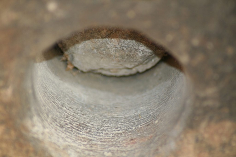 吉萨地区,螺纹构槽的花岗石钻孔近照。﹝照片提供者:Chris Dunn,2007年﹞