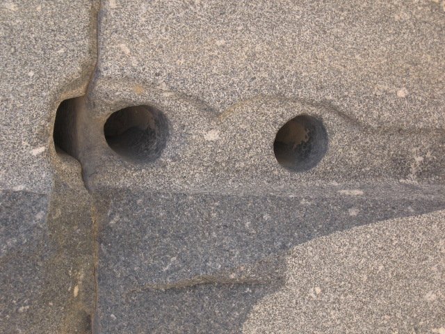 阿布西尔,玄武岩石上的两个钻孔。照片提供者:gizapyramid.com,2007年