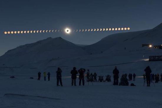 在斯瓦巴(Salbard) 所看的日蚀缩时摄影