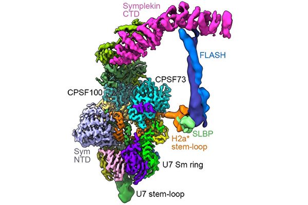 北卡罗来纳大学医学院(UNC School of Medicine)、哥伦比亚大学和洛克菲勒大学(Rockefeller University)共同完成的研究,使用低温电子显微镜(cryo-EM),第一次观测到称为“组蛋白mRNA 3’末端加工器”这一复杂的分子组合体的原子结构。
