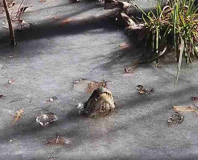 博物馆也表示,在这个情况下,鳄鱼会进入像冬眠一样的状态,让他们的新陈代谢降低,节省能量消耗。幸运的是,礼拜二结冰已经融化,鳄鱼暂时不用再被冰成“鳄鱼冻”啦~网友看到后纷纷表示,“好聪明”、“比人类更强”。
