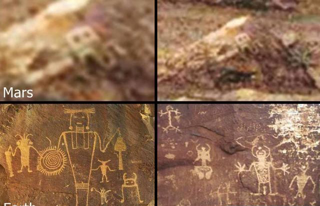 如今,幽浮迷Scott Waring最近的发现显示出,有更多证据支持此观点:远古时有生物住在火星上。根据Waring的说法,好奇号传回来的一个新影像显示,火星岩石上有异常的特征,它们非常像地球上的石刻画或雕刻。