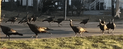 这种绕圈的行为看起来像是某种黑魔法中的死亡仪式,但此表现绝对不代表它们很大胆,事实上,火鸡们可能对路上的尸体感到极度紧张,这是它们觉得能安全“检查”尸体的方式。