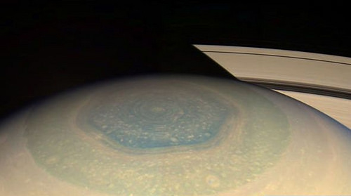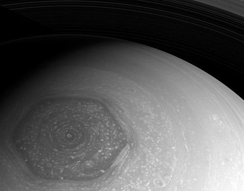 在土星北纬78度,靠近北极处存在一个六角形的云状结构。