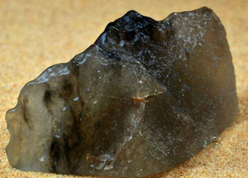 这些玻璃碎片很像在阿拉莫戈多(Alamogordo)原子试验场找到的碎片,这是现代世界的第一个核子装置引爆的地点。当温度超过华氏3300度(摄氏1800度)时会形成沙漠的玻璃碎片,造成沙子熔化并混合在一起。