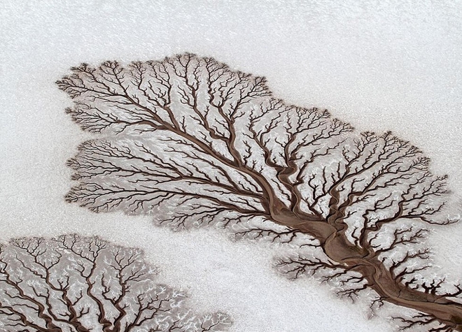 墨西哥巴扎加利福尼亚州的沙漠,河流在地表上画出树一般的形状。