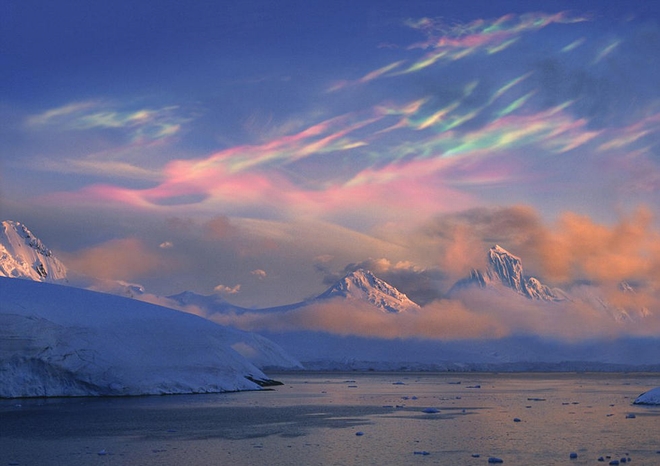 彩色极地平流层云,常出现在挪威等极地地区。