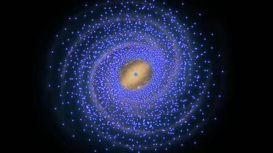 如图中的蓝点,画家印象中的造父变星围绕着星系。