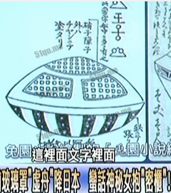 “虚船事件”,1803年江户时代常陆国,古时常陆国的领域大约为现在茨城县,海边出现一台虚船(UFO),当地人进去里面看到一个大约20/23岁左右非常美丽的女性,头发红黑色,皮肤白,手上拿着一个长方形白色盒子60厘米长,说著蛮话(听不懂的话),极力保护盒子不让人靠近盒子,船里面有写着看不懂的文字。