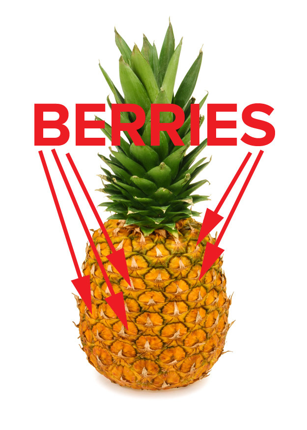 真正疯狂的要来了,你知道一颗凤梨其实不是一颗水果吗?!凤梨其实是一种叫复果的水果,它是由一颗一颗小浆果拼起来的!