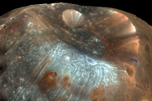 ▼ 火星最大的卫星“火卫一,(佛伯斯,Phobos)”。
