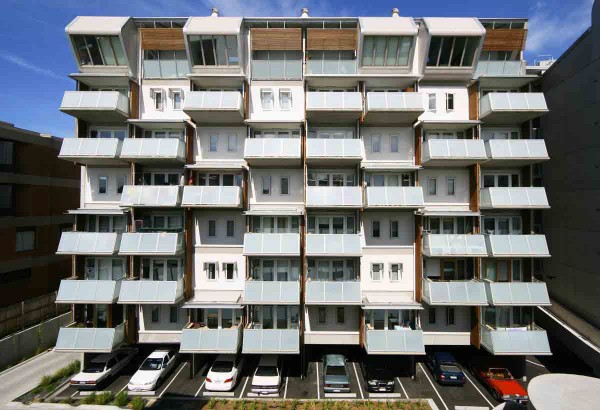 为了让光线可穿透至后栋,墨尔本的国民住宅区K2大厦的前栋是以交错内缩的方式建造而成。这也使得大厦与街道之间有着较为宽阔的距离,换句话说在公私领域间有个缓冲的空间。