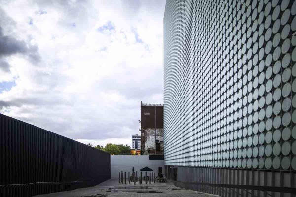 这个两层楼的建筑物有三个外墙包含有孔的金属板、玻璃及窗帘。它是个有许多可依循环境而随心所欲做局部改变的建筑物。