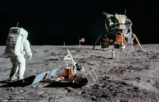在阿波罗任务中,有12位宇航员在月球上留下了脚印,他们还进行了多项实验,并利用哈苏相机拍摄了众多令人震撼的图片。图中是阿波罗11号任务中一位拿着实验设备的宇航员。