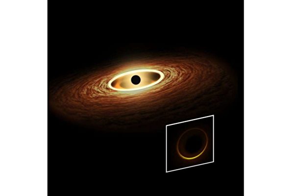 黑洞周围明亮光环示意图。(NASA/JPL-Caltech/T. Pyle)