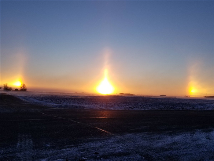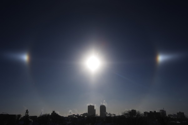 许多位在加拿大的民众,抬头看见天空出现2个或3个太阳,美国国家气象局(US National Weather Service)解释,幻日(Sun dogs)是由太阳光线经六角形柱状冰晶折射,依据冰晶所在位置,在太阳实体的左侧或右侧,或是左右两侧出现太阳幻影,“大部分离太阳近的颜色偏红,较远的偏蓝。”