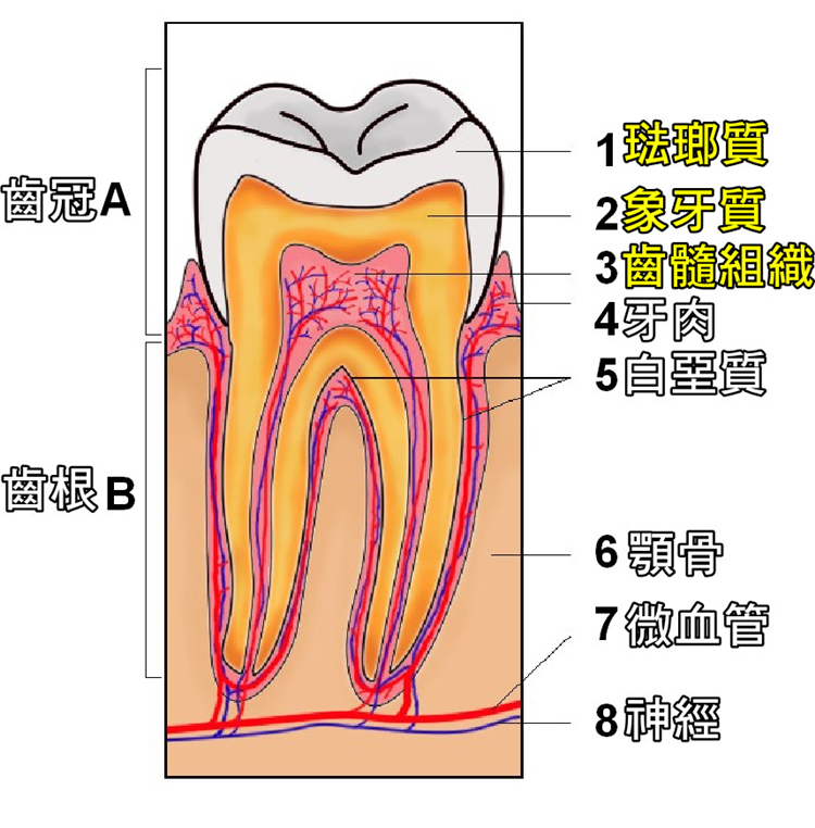 牙齿坚硬的白色珐琅质下,柔软的齿随组织本来就有自己生长的功能,但人体只有在少数环境下才能激发再生,例如蛀牙住到齿髓裸露或是牙龈流脓时才能激发生长,即使在这样的环境下,牙齿能长出来也只有薄薄的本质层,只为了让牙髓不要直接接触到外界。
