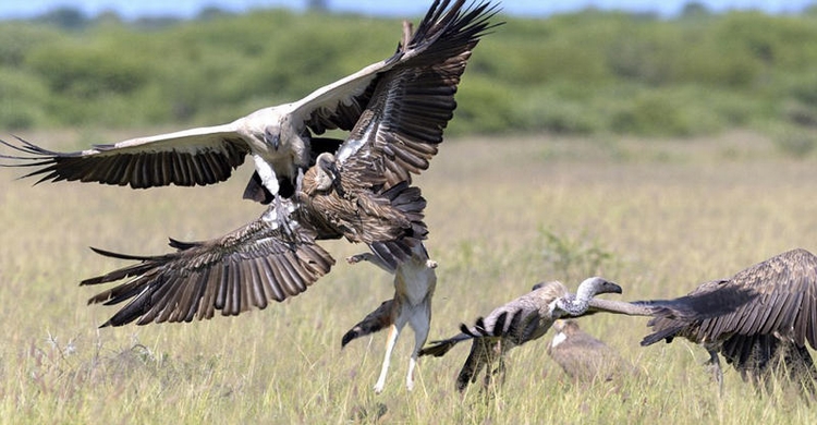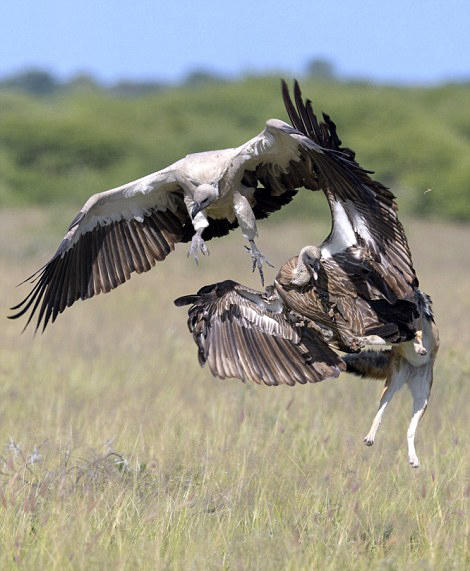除此外,这种投机的大鸟还会去恐吓、追赶小体型的动物,找机会偷食他们的晚餐。